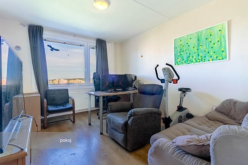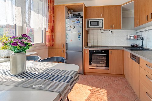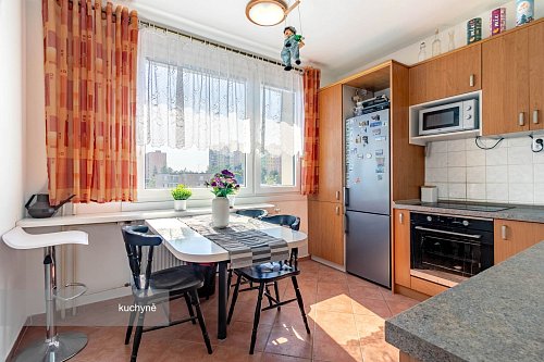 Byt se nachází v 6. patře, v revitalizovaném panelovém domě s výtahem a je v pěkném stavu. V roce 2023 byla naistalována nová kuchyňská linka i se spotřebiči- indukční deska, myčka, trouba, lednice + mrazák. K dispozici jsou prostorné pokoje s kuchyní, se samostatným WC, koupelnou se sprchovým koutem a spoustou úložných míst jako např. vestavěné skříně či samostatná komora.