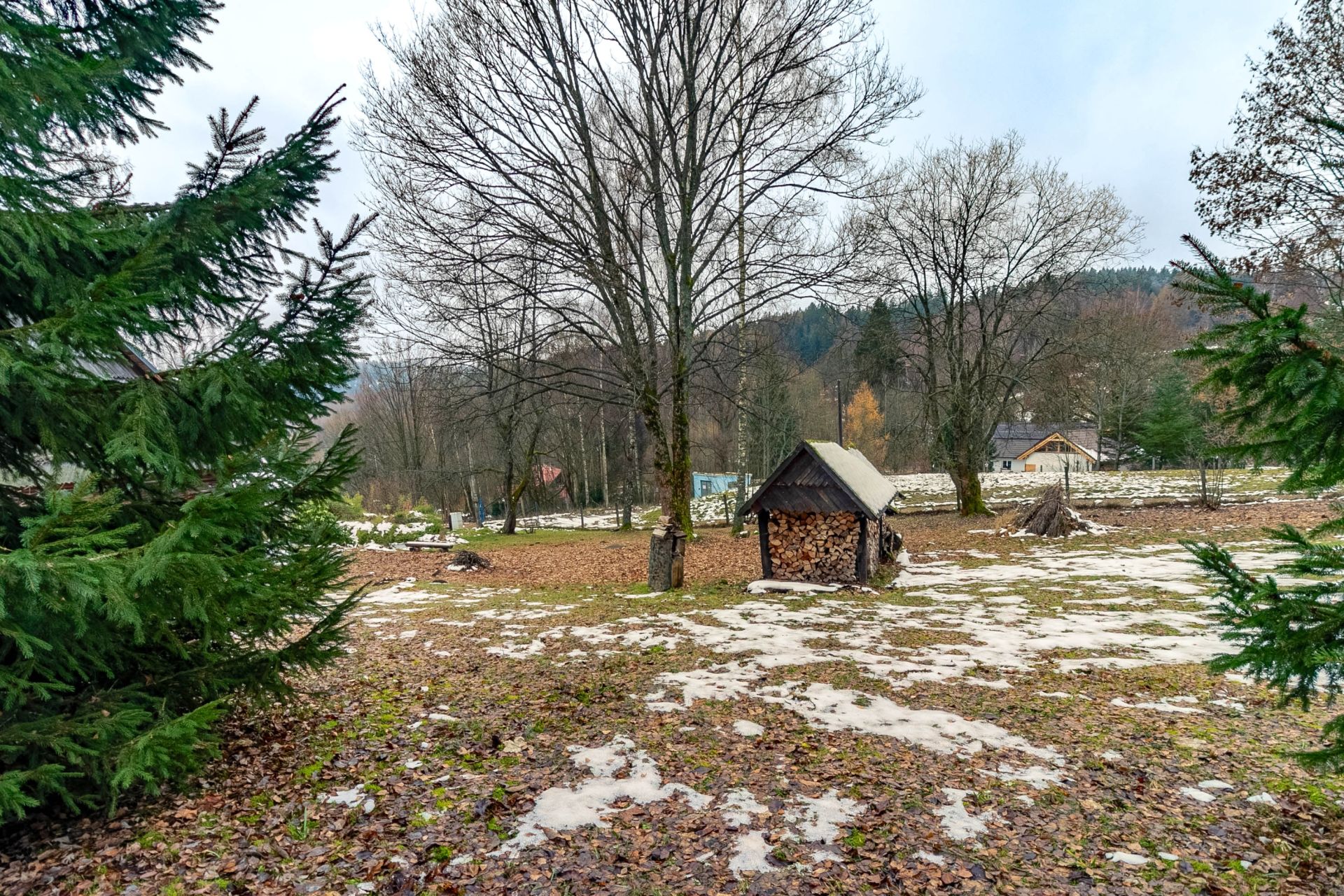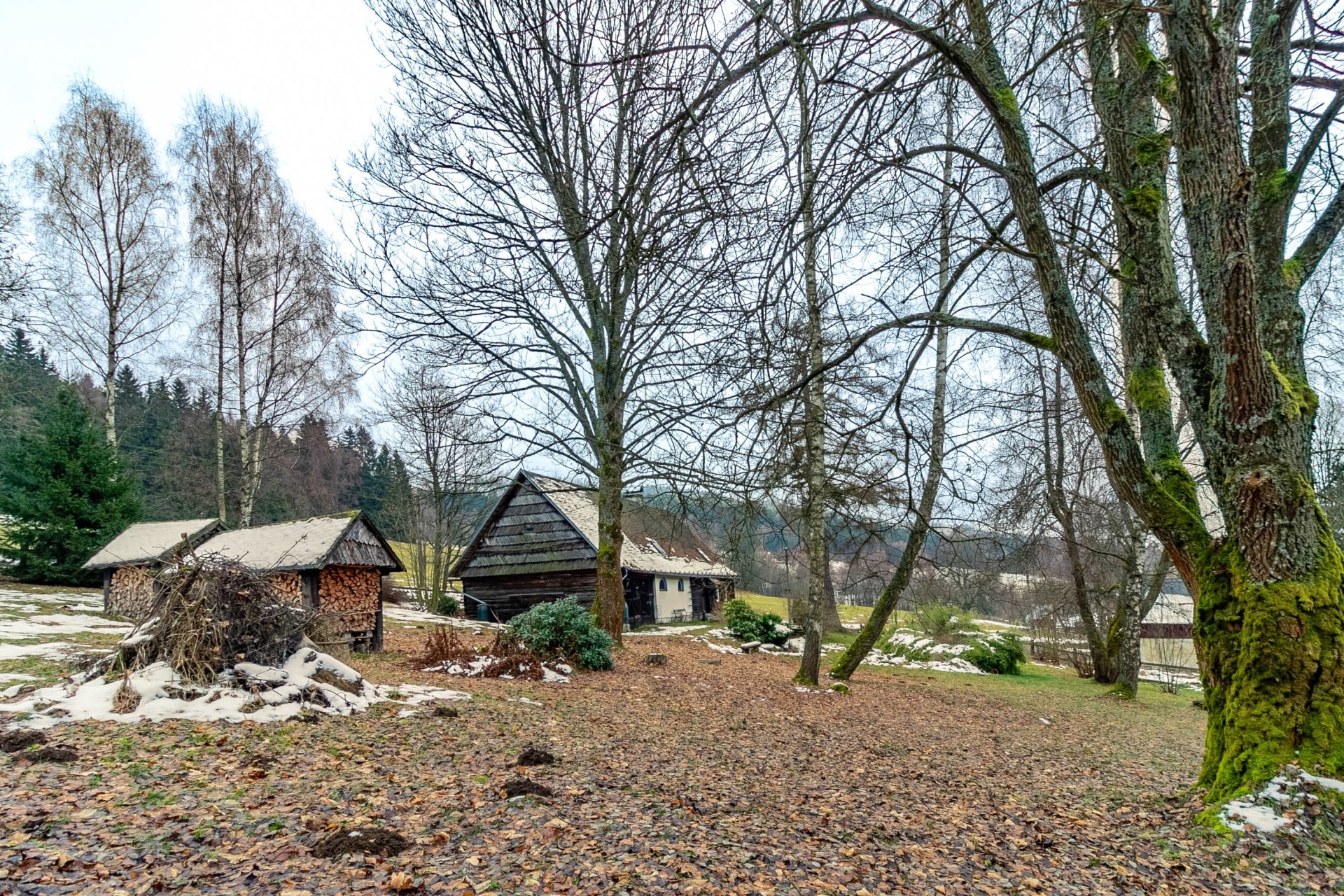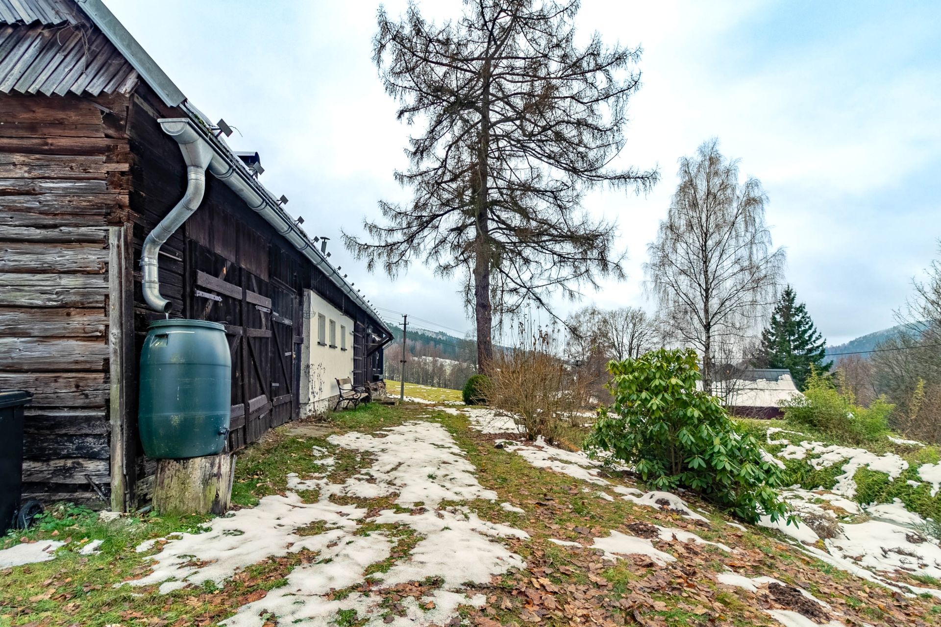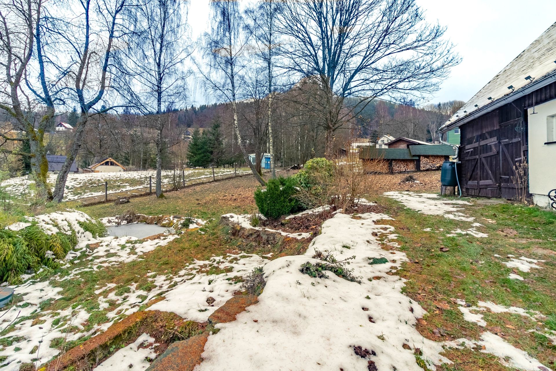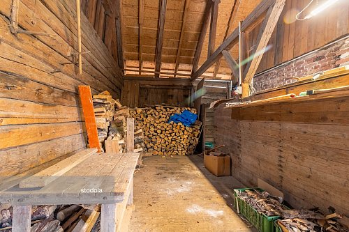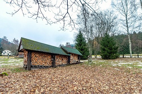 Na dům navazuje stodola, vhodná k uskladnění např. různého nářadí a náčiní, na velké zahradě okolo domu je k dispozici dřevník s velkou zásobou dřeva.