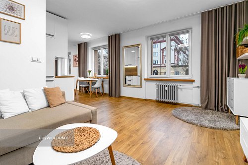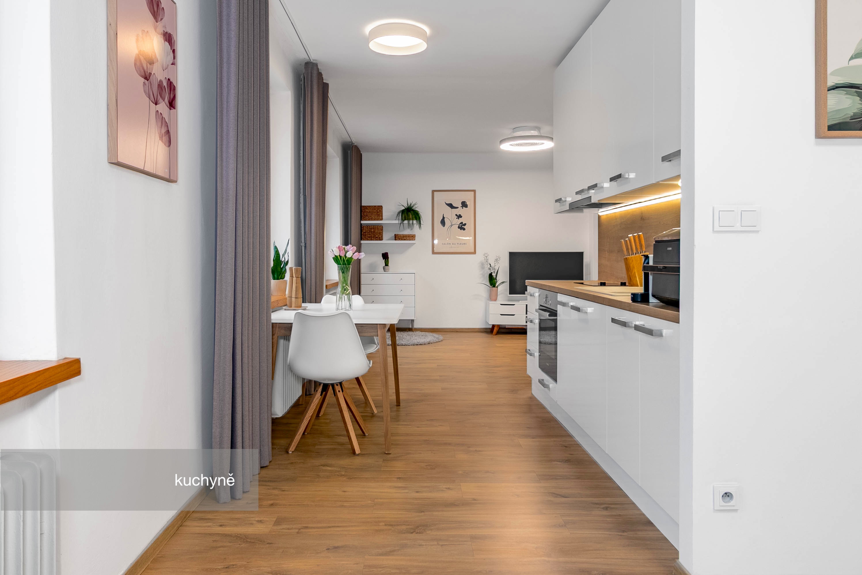 Byt nabízí světlý interiér, jednotný styl a jeho promyšlené řešení z něj dělají ideální bydlení pro jednotlivce nebo pár, kteří chtějí víc než jen čtyři stěny.