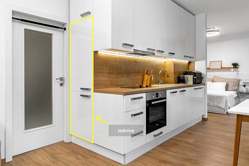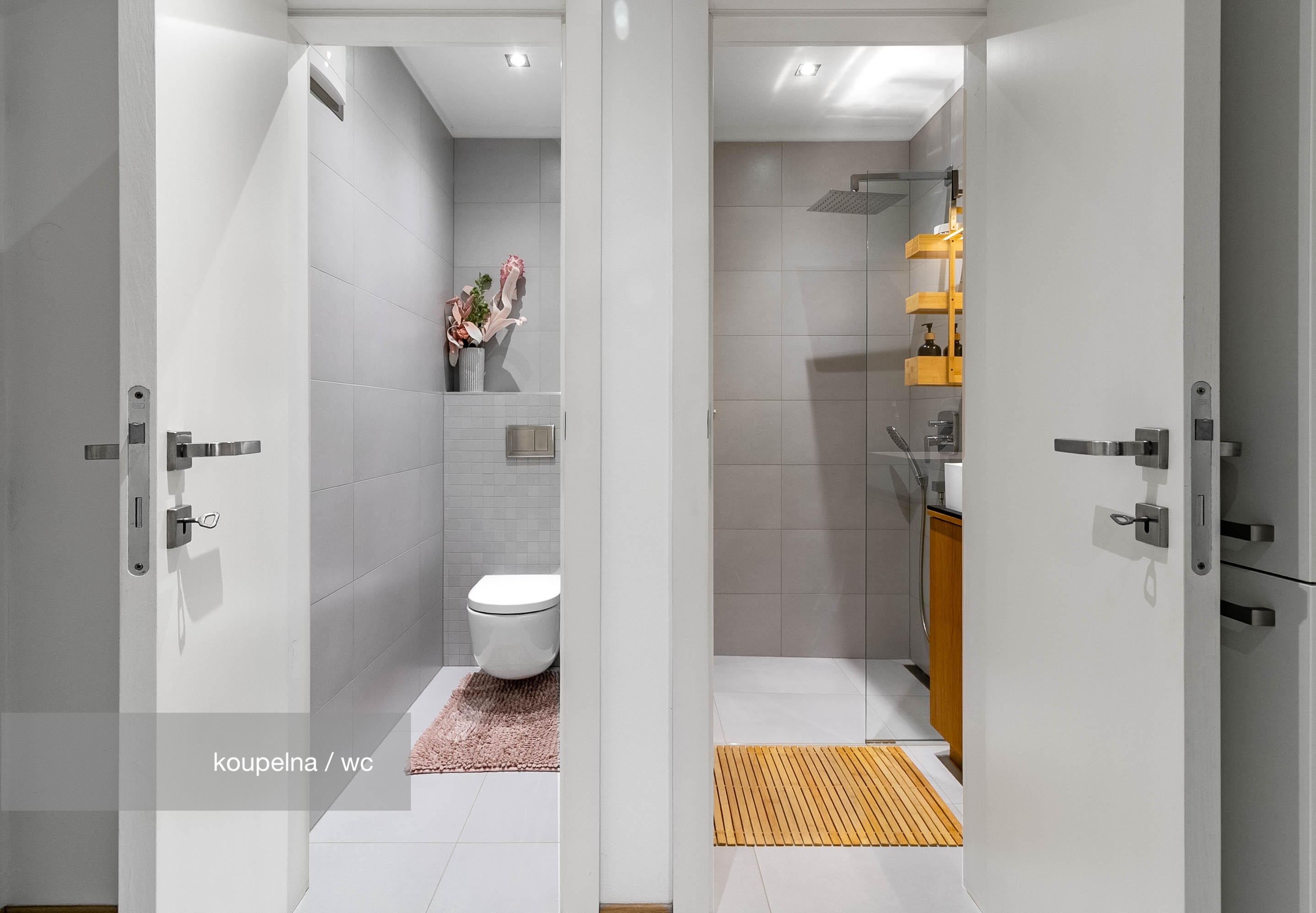 V roce 2021 prošel byt kompletní rekonstrukcí vč. zásadní změny dispozice, kdy se z původního 2+1 vytvořil moderní, otevřený a velmi příjemný prostor. Praktická a dostatečně velká je vstupní předsíň, moderní koupelna se sprchovým koutem a samostatnou toaletou. Promyšlené jsou také další detaily, jako např. prostor pro úschovy pračky či zabudovaná lednice s mrazákem v prostoru kuchyňské linky.