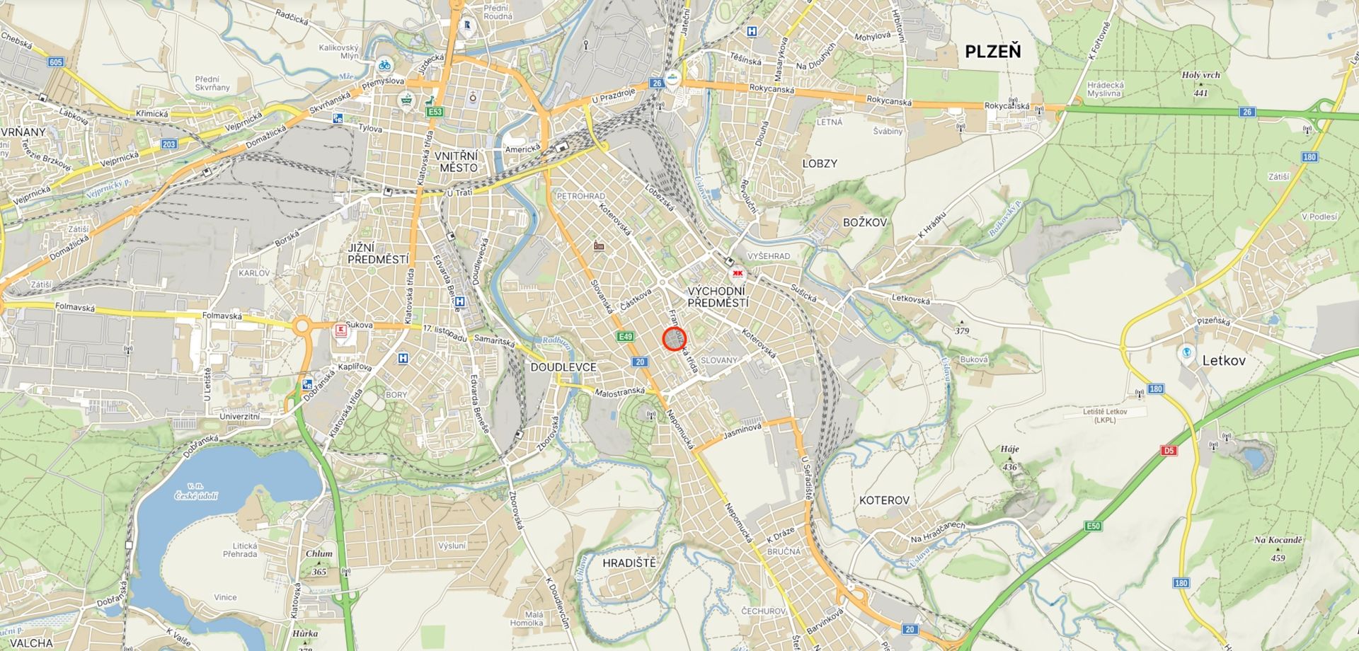 Výborná dostupnost kamkoliv - rychlé napojení na centrum Plzně, MHD pár kroků od domu, snadný výjezd z města.
