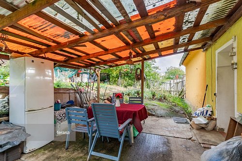 Okolo domu se rozprostírá menší zahrada o rozloze 157 m2. V zadní části domu je zastřešené posezení a přístup do domu.